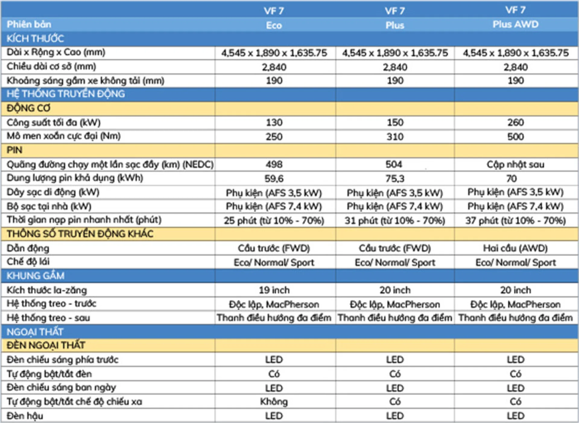 Thông số VinFast VF 7